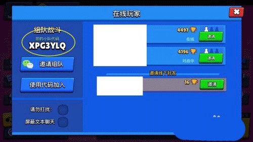 3、如图所示,生成团队代码后,团队就建立了。然后我们可以邀请游戏好友加入游戏或者复制代码发送给微信好友邀请他们加入。