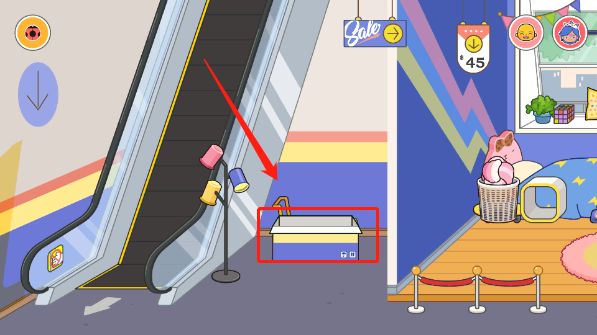 2.逃离角色,移动到最左边的自动扶梯,然后去下一层。