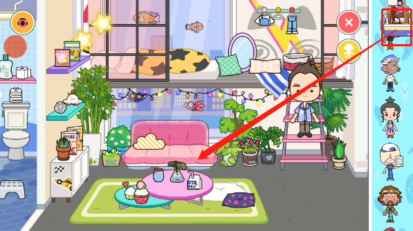 5. 接下来,将角色和家具拖到角色栏中。