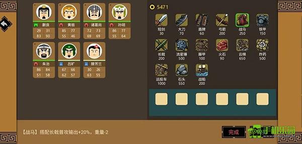 2、建议主力攻城将(肉盾)/平民(生存强化)与战马搭配使用,或者堡垒型守城文官和不动门将型守门人单独使用。减少了近一半的远程物理伤害,大大提高了武将的生存能力。价格也很便宜,在小镇上就可以买到。