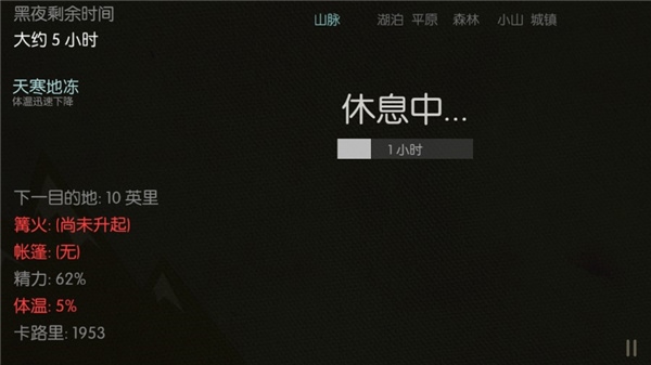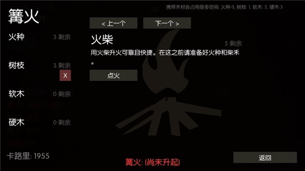 1。卡路里,温度和能量太低会导致死亡。当最低体温降至30时,必须点燃篝火。