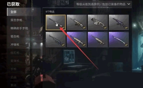 接下来点击界面上的武器选项。