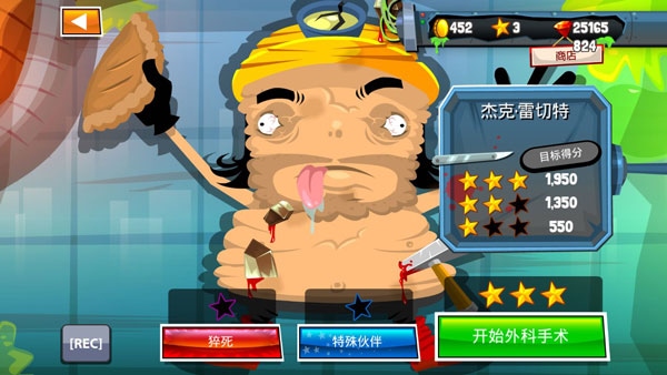 右边的星星和数字代表你(医生)完成手术后得到的奖励,当然前提是你成功完成手术。