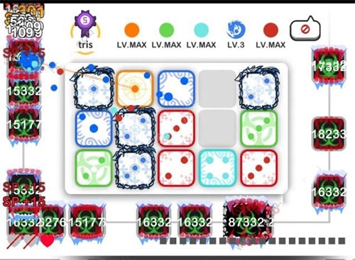 5.太阳流,思路和AOE流类似,但是太阳流的战斗力是最强的流派之一,所以单独提到。太阳+路障+地雷/瘟疫+小丑+成长。一开始画一个太阳后,省钱直接画四个太阳。前期不要急于理财。小丑将帮助太阳提高星级。到了四个太阳之后就基本稳定了。难点在于如何在不影响太阳效果的情况下提高骰子的等级。