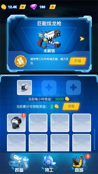 2.收集金币,升级迷你特工队的装备,占领更多的区域。