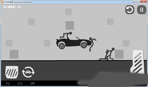 2、合理使用按键。左边的按钮用来减速或倒车,右边的长按钮用来加速,带有汽车标志的按钮可以让汽车再次从空中坠落。通过重复操作这三个按钮,可以使火柴人受到更多伤害。