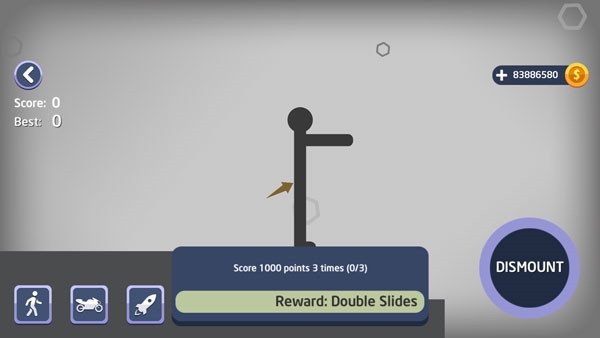 3.长按左下角的“DISMOUNT”按钮来控制火柴人的动作。
