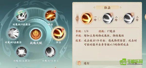 二技能:疯狂攻击,攻击1个目标,暂时提升等级*1.5物理攻击力。 (2级:技能伤害效果提升10%,3级:技能伤害效果提升10%)