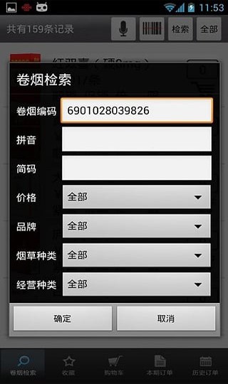 输入某个香烟产品的订单数量时,如果输入数量大于烟产品的可用数量,请单击“确定”,手机将自动将输入数量修改为单个产品的可用数量。