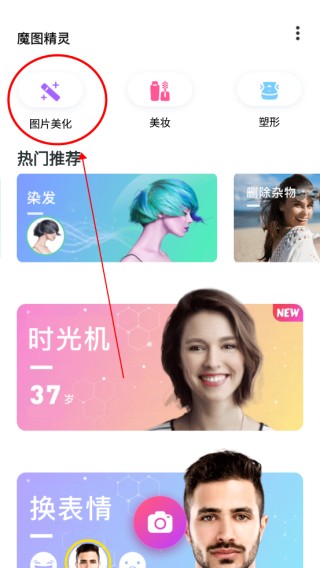 1。输入魔术图片应用程序,然后单击“美丽的眼睛”