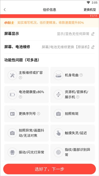 4。选择手机容量,购买渠道,网络标准和帐户锁定状态;